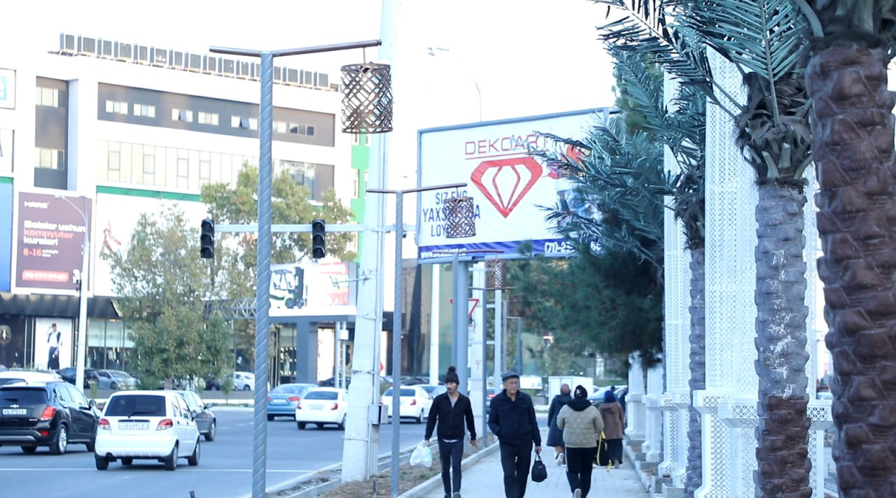 Hududni toza va ozoda saqlash maqsadida chiqindi urnalari ham o‘rnatilganligi, sanitar holatni yaxshilashga xizmat qilmoqda. Bu yerdagi bir birini takrorlamaydigan manzarali daraxt ko‘chatlari o‘tqazilib, alohida sug‘orish tizimlari joylashtiriladi. Ayni paytda markaziy ko‘cha chorrahasining ikki tomonida dekorativ ustunlar o‘rnatilmoqda. Ko‘chaning markaziy qismida favvoralar ham bunyod etiladi.