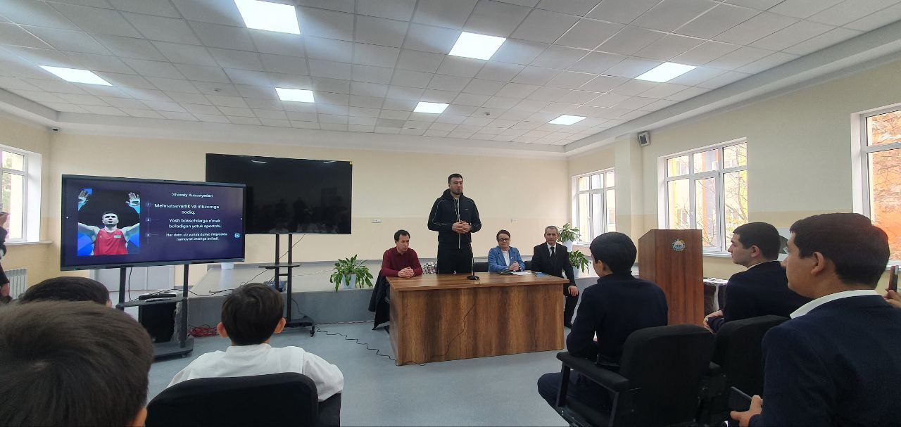 Uchrashuv davomida sportchi o‘quvchilar bilan o‘zining bosib o‘tgan mashaqqatli yo‘llari, erishgan yutuqlari, o‘qish va sport sohasini uyg‘unlikda olib borish, sport va jismoniy tarbiyani inson hayoti va har qanday sohadagi o‘rni va ahamiyati borasidagi ma’lumotlari bilan o‘rtoqlashdi.