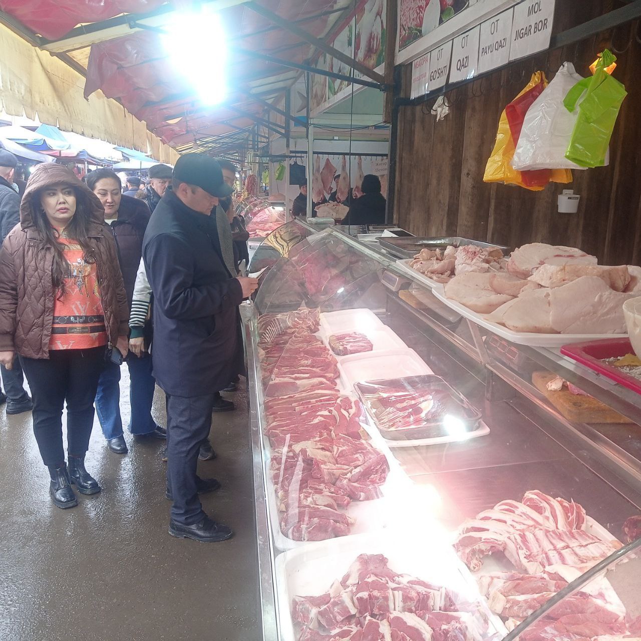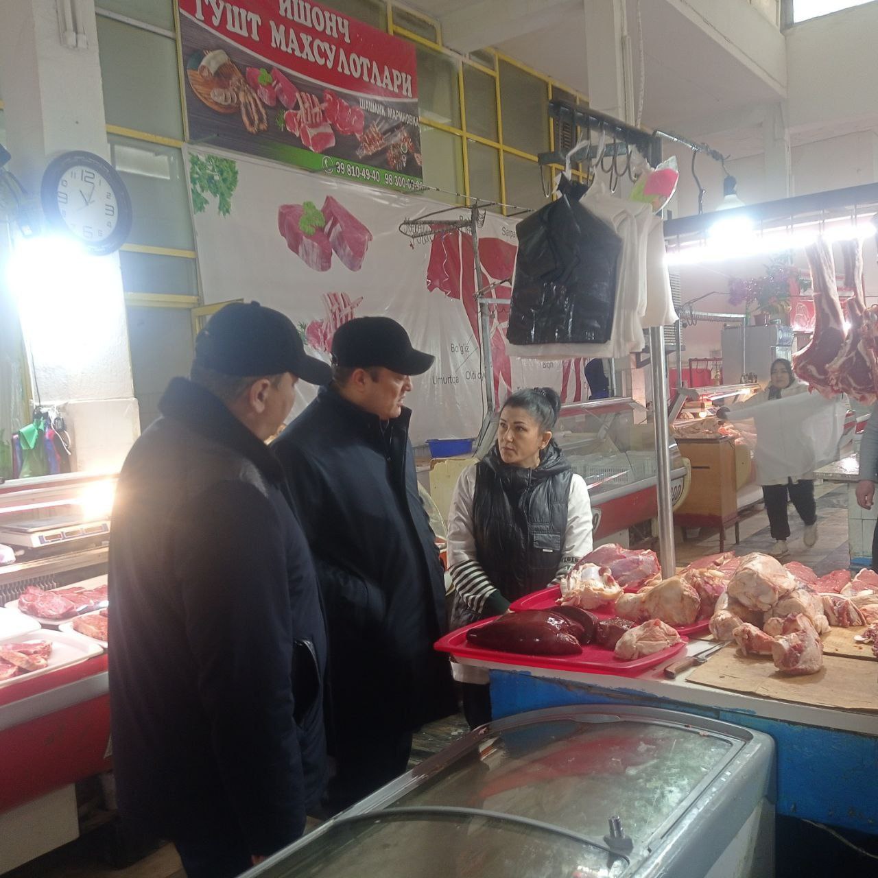 Ўрганиш мобайнида деҳқон бозорида гўшт маҳсулотларини теширувдан ўтказилган малумотномаси ва сақлаш қоидалари кўздан кечирилди. Бозор маъмуриятига гўшт маҳсулотларини лабаратория текширувидан кунлик ўтказиш, сифатига эътибор қаратиш юзасидан кўрсатмалар берилди.