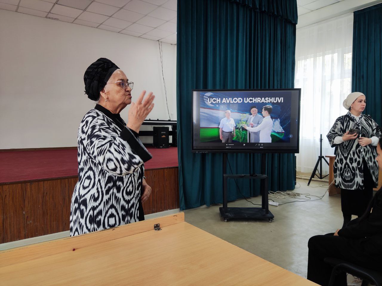 Tadbirda Tuman ma’naviyat va ma’rifat bo‘limi rahbari Komola Miraminova, Buvijonlar maktabi rahbari Zamira Xamidova, hamda "Sevinch", "Bobodexqon", "Axilobod" va "Oq tepa" mahallalarining "Keksalar maslahat guruhi" a’zolari ishtirok etdi.