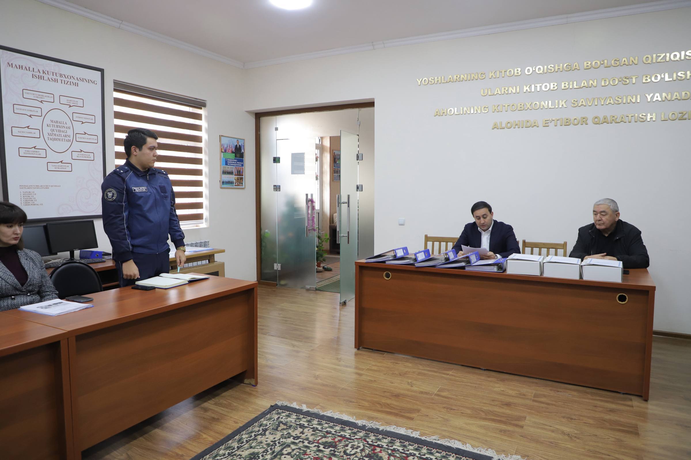 Yunusobod tumani prokurori Ya.A. Abdurahmonov O‘zbekiston Respublikasi Prezidentining 2025 yil 3 yanvardagi “Respublika mahallalarida xavfsiz muhitni yaratish va huquqbuzarliklarning barvaqt oldini olish tizimi samaradorligini yanada oshirish bo‘yicha chora-tadbirlar to‘g‘risida”gi PQ-1-sonli hamda 2025 yil 1 apreldagi PQ-133-sonli qarorlari ijrosi doirasida “Uvaysiy” mahalla yettiligi tomonidan olib borilayotgan ishlar holati va samaradorligi bilan tanishdi.
