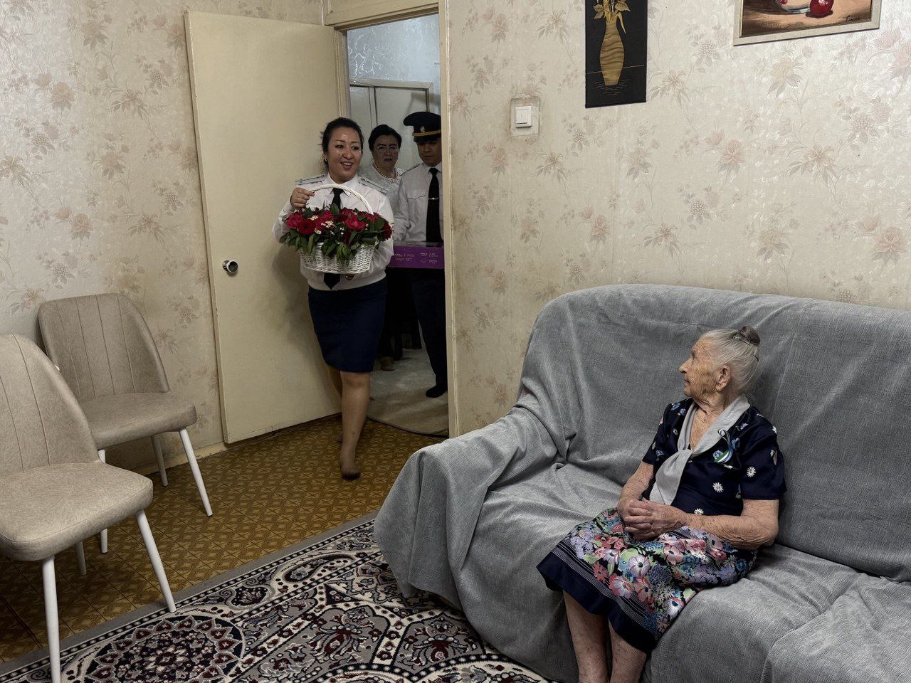 Shunday ezgu tashabbuslardan biri sifatida “Buyuk Turon” MFYda istiqomat qilayotgan, 2-jahon urushi qatnashchisi, 102 yoshga kirgan Murina Vera Vasilyevnaning xonadoniga hurmat bilan tashrif buyurildi.
