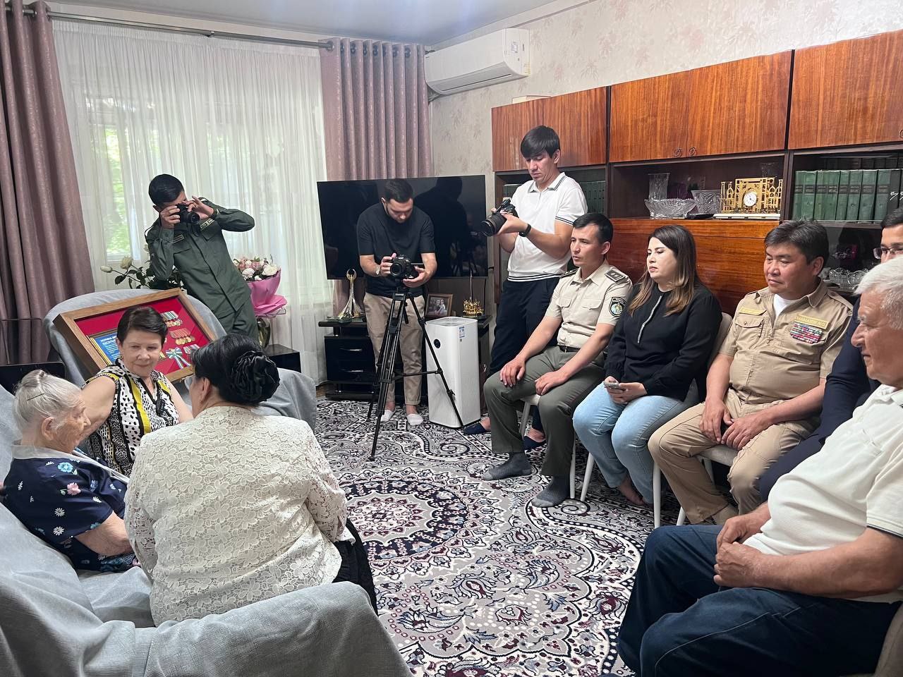 Tashrifda “Nuroniy” jamoat fondi tuman bo'limi, tuman ma'naviyat va ma'rifat bo'limi, Toshkent shahar Majburiy ijro byurosi xodimlari, “VETERAN” jangchi nogironlar uyushmasi va “Qalqon” orkestri vakillari ishtirok etdi. U yaqinda Rossiya Federatsiyasi Prezidenti V.V.Putin tomonidan "80 let pobedy v Velikoy Otechestvennoy Voyne 1941-1944 gg" medali bilan taqdirlangan.